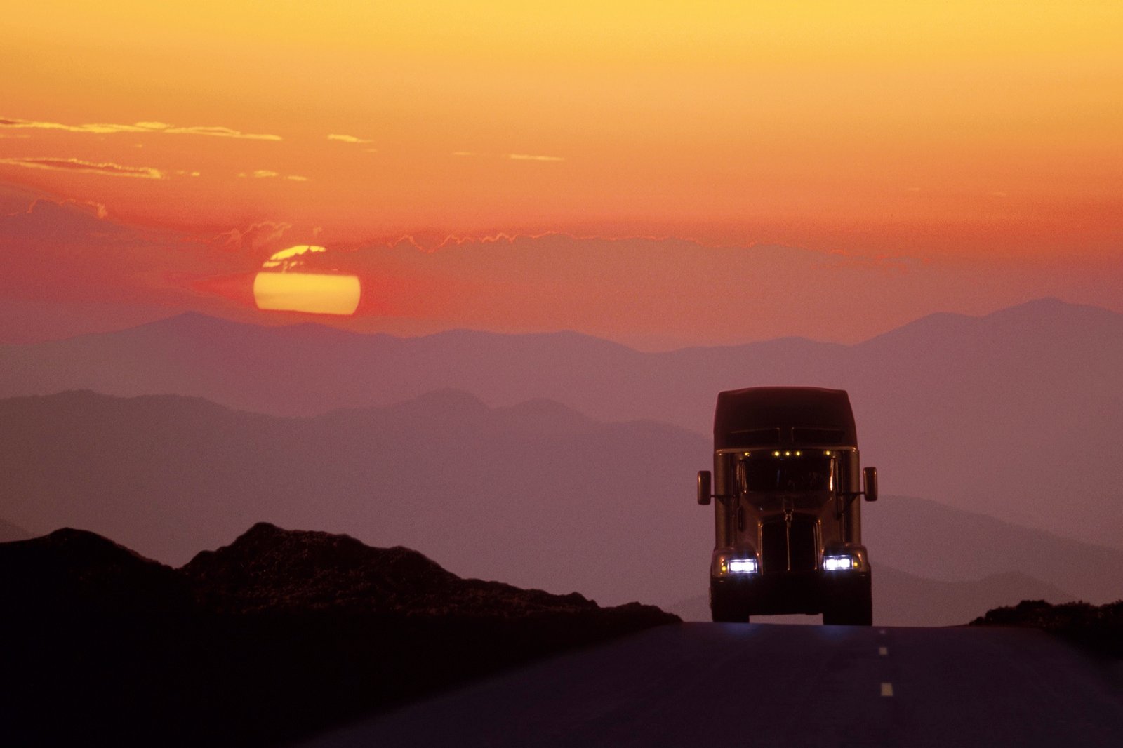 truck driving sunset