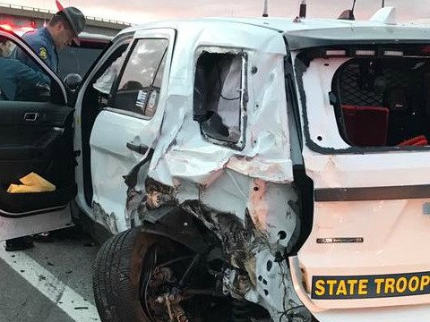 semi hits patrol car on i-70 in st. louis